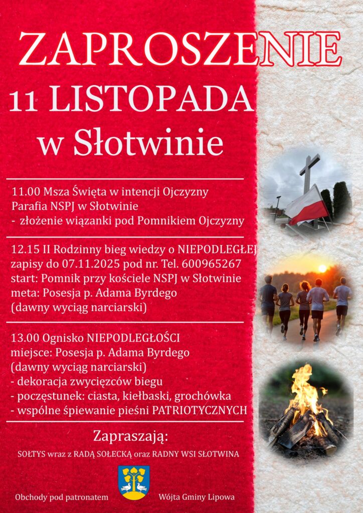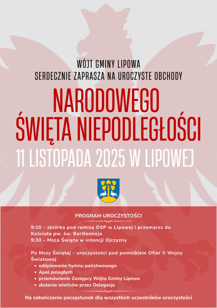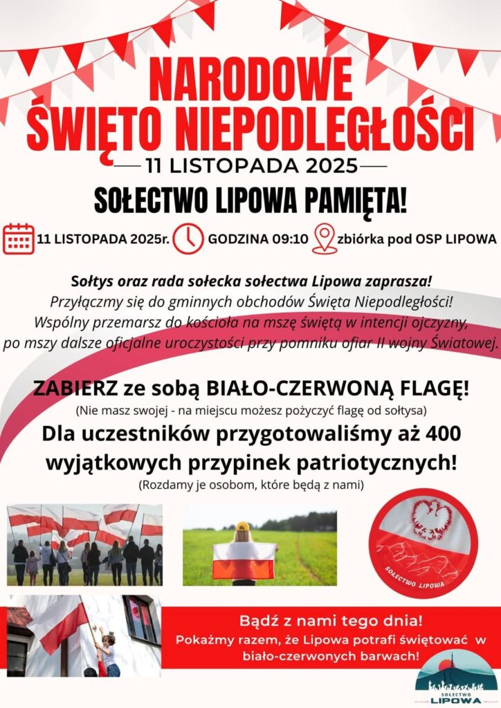 Sołectwo Lipowa pamięta i zachęca mieszkańców do licznego udziału w gminnych obchodach Święta Niepodległości!